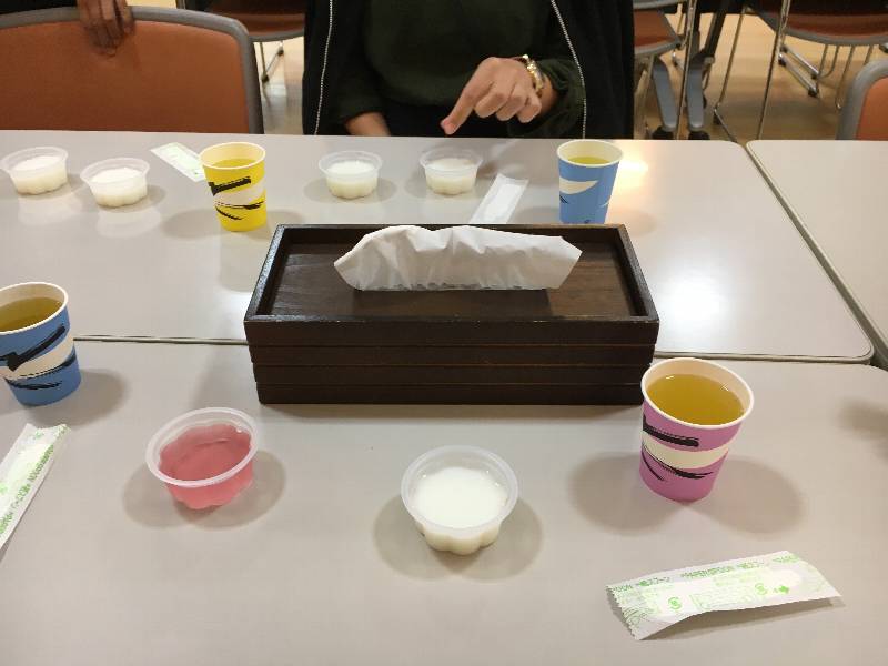左写真はかんてんパパでの試食寒天。最近は外国人の観光客が増えて