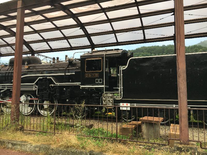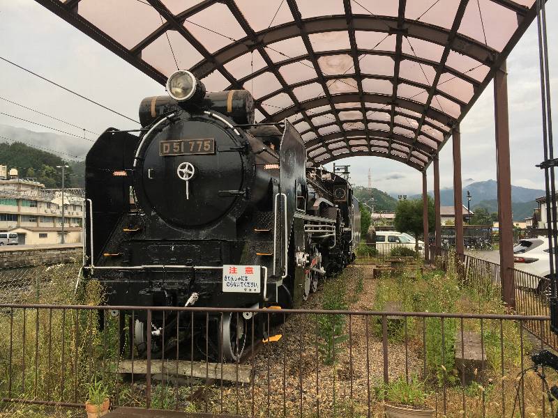 JR木曽福島駅の横には往年の貨物機関車「D51」が展示されて