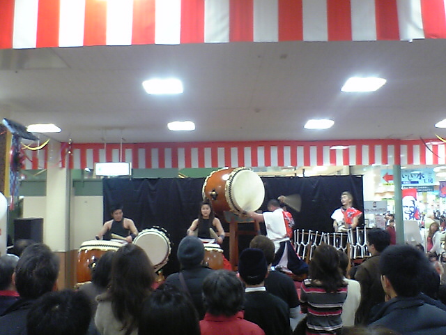 で、上の写真は一階特設会場で行われていた「新春初太鼓」。