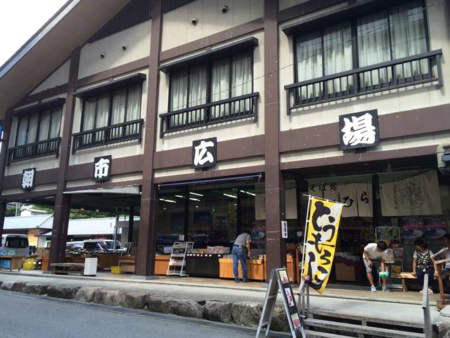 中央道に入り、昼食は飯田昼神温泉郷の「朝市広場」にある
