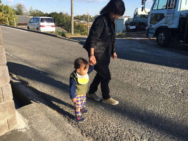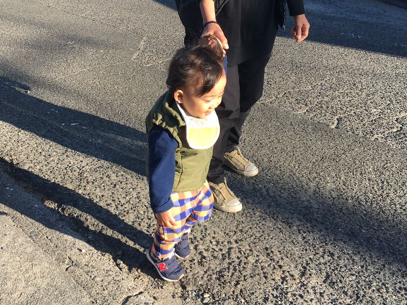 ヨチヨチ歩きの彼の手に婆ちゃんの手の温もりは