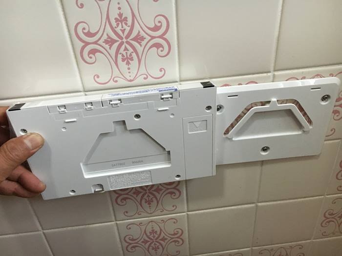 で、実はこのリモコン操作パネルをトイレの何処に付けるかが