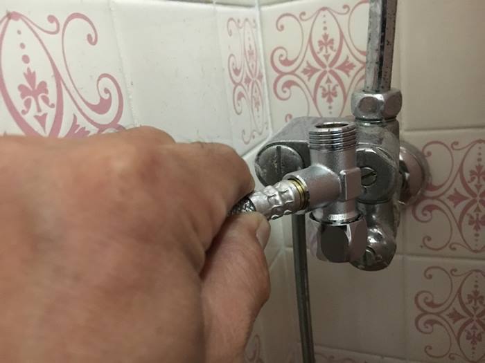 そして新しいフレキシブルホースを取り付けます。