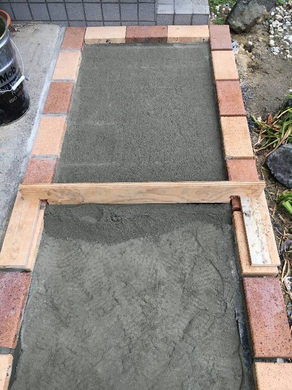 実際にレンガが落ち着くまで踏んでみたら想定高さから約3ミリ下がりました。