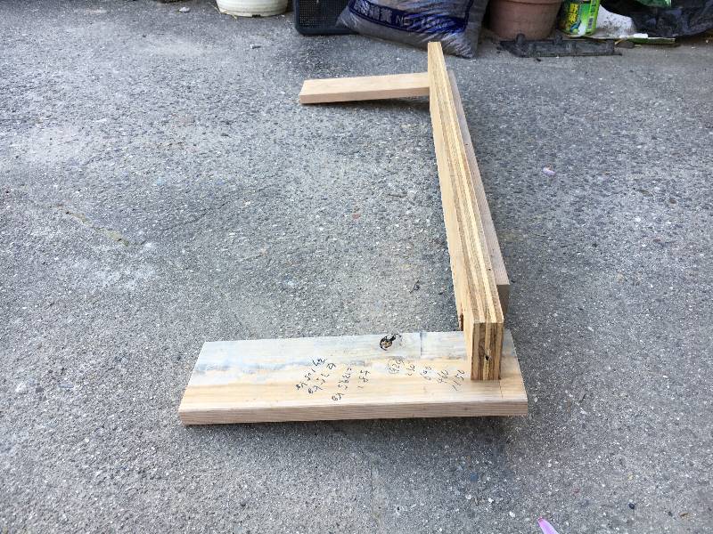 端材を使って即席で作ったのですがこの形の説明をしますと、