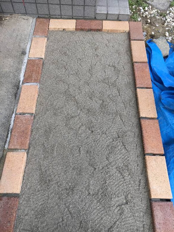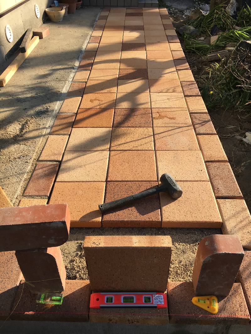 枠レンガ内に敷きレンガを全て並べ終えてその上を歩いてみました。