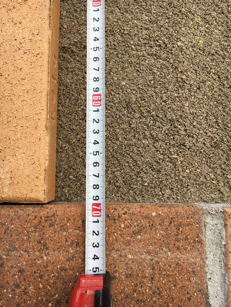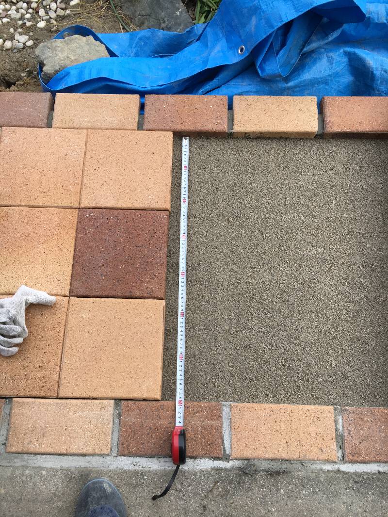 で、実際に敷きレンガを並べて枠レンガとの隙間を確認してみました。