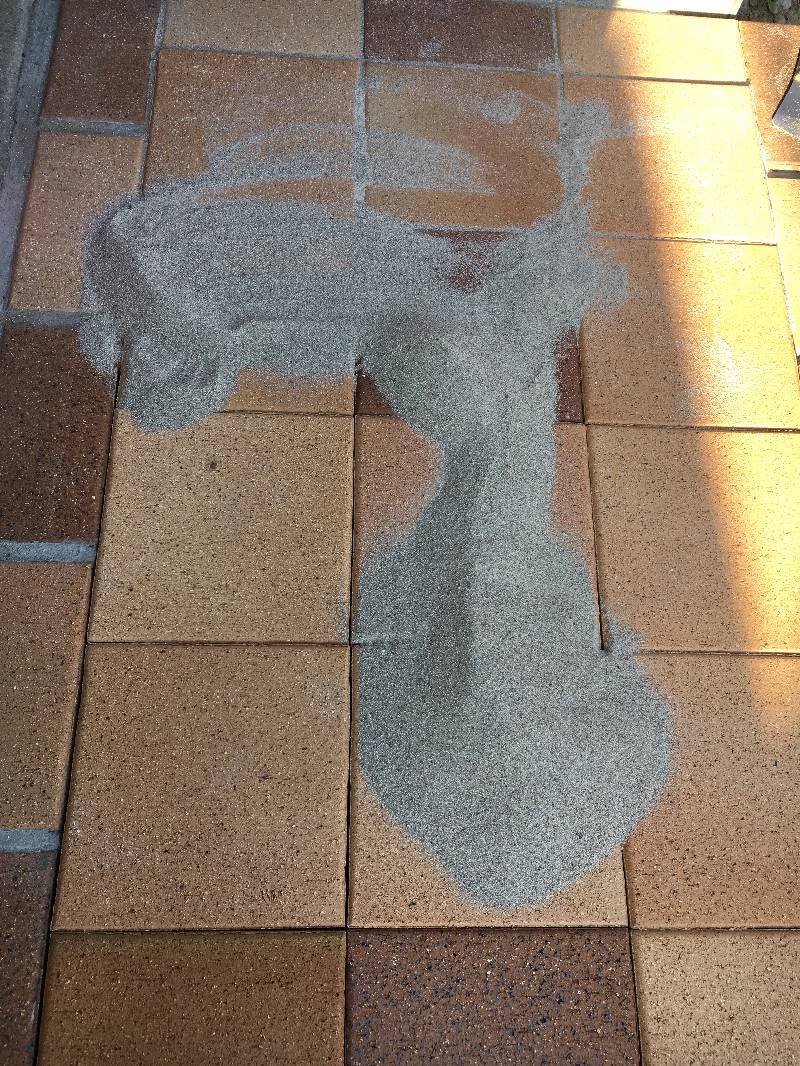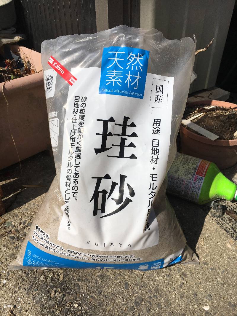 そして敷きレンガの具位置調整をコンコンやりながらこの珪砂を