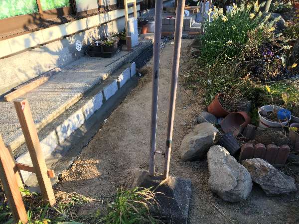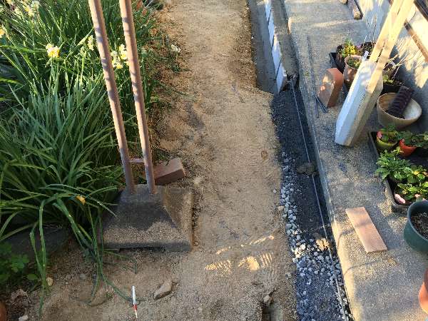 犬走りは玄関から西に向かって25/4000(mm)下がりでしたので