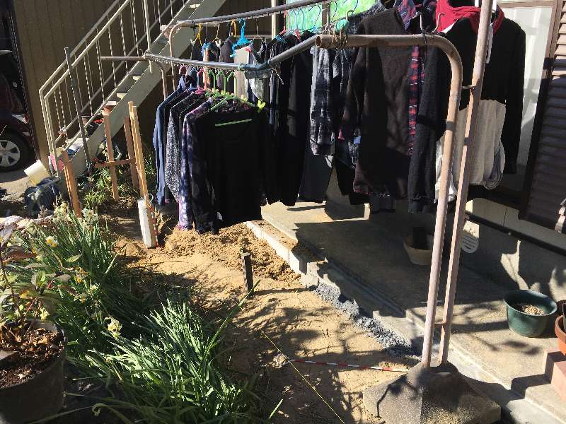 物干し台が邪魔なのと、やはり植木鉢や雑草などが作業を