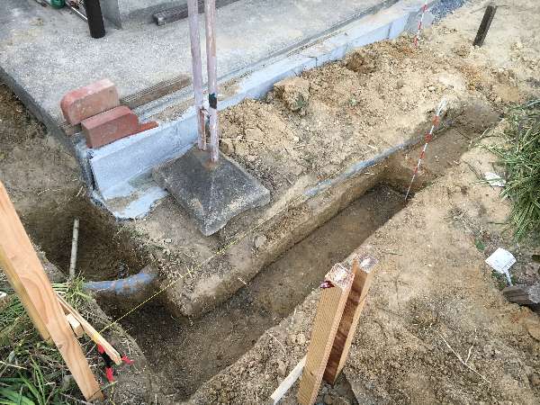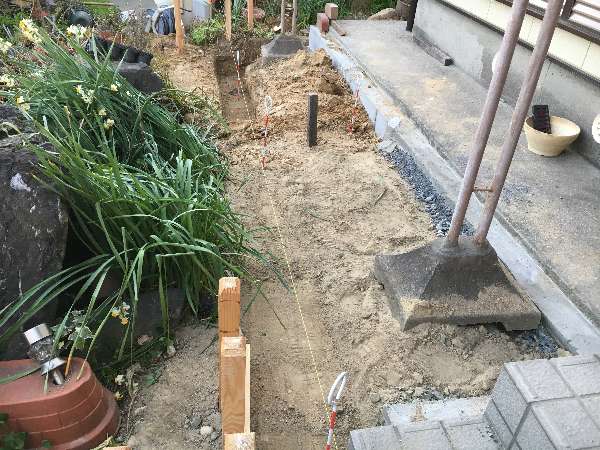左の写真の奥がガレージ側になりますがレンガを敷く基礎の