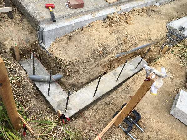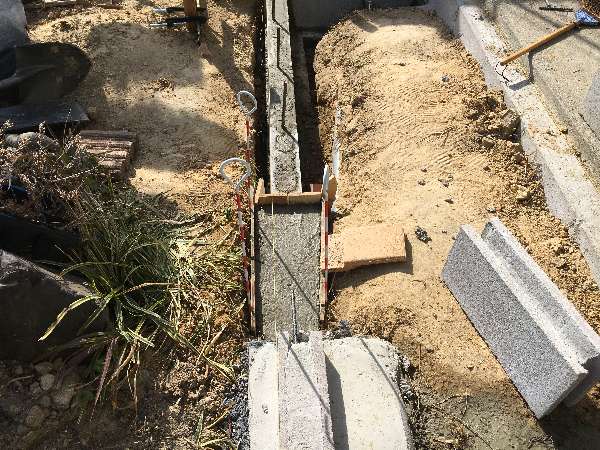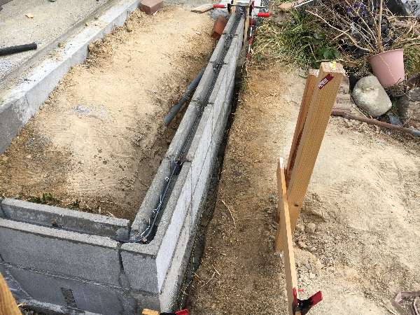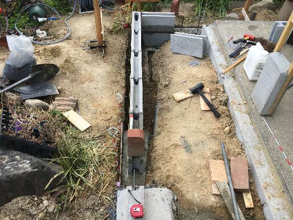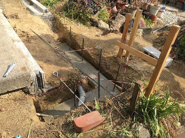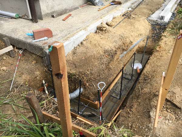 苦労したのは掘った溝の幅が狭く、型枠をバラスが大変だったと