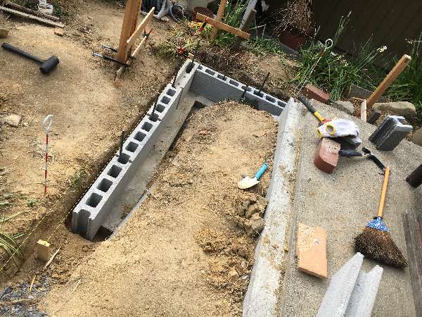 右の写真はブロックの2段積みから1段そしてハーフを1段という