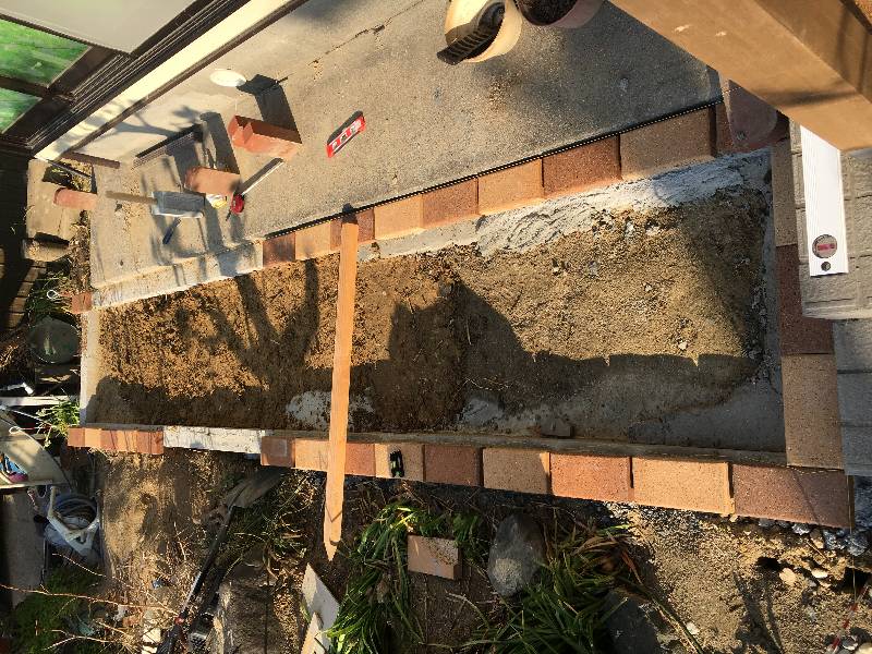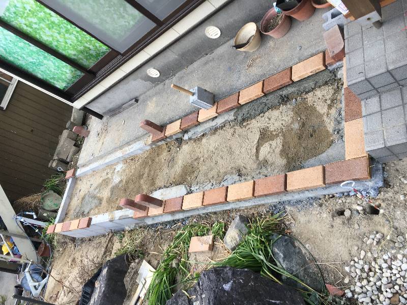 4個のコーナーレンガが設置完了したのでここからは枠のレンガ
