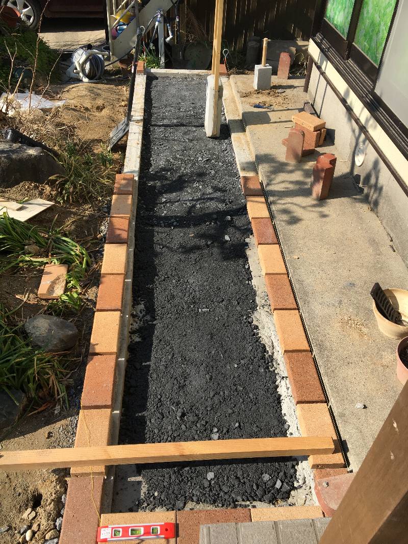 間隔も一定にしながらの作業になりますが、個々のレンガの水平も