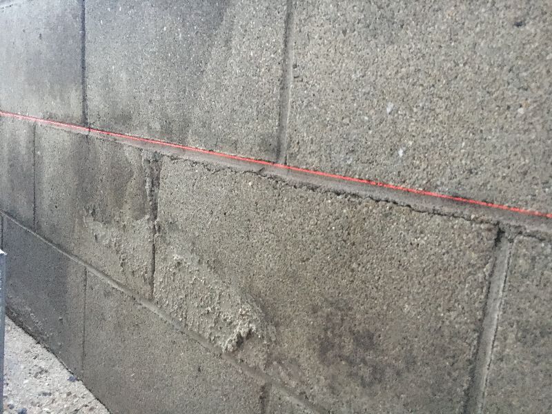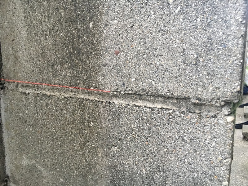 こちらは庭側の控え壁付近です。ラインをブロックの繋ぎ目に