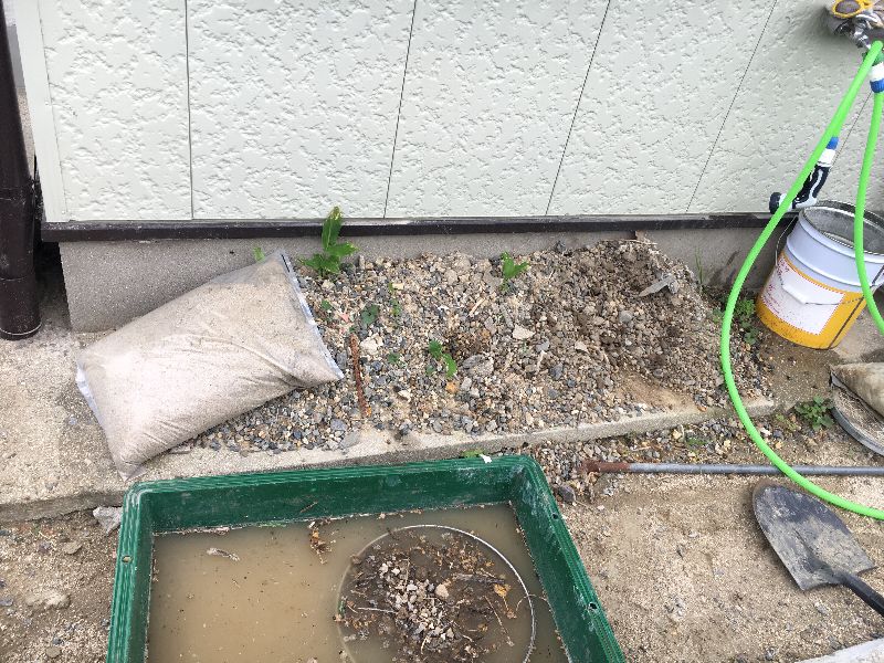 再利用できそうな砂利は特別大きな物は除いて裏庭の奥の方へ。