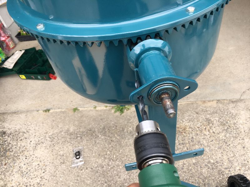 コンクリートミキサーが組みあがり、