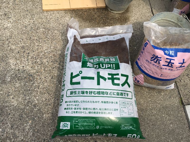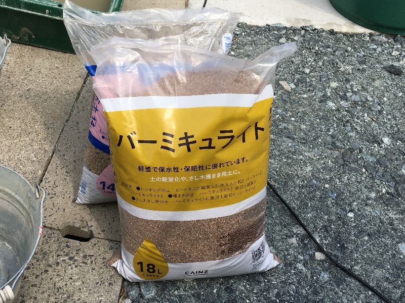 カインズで購入した赤玉、無調整ピートモス、パーミキュライト、