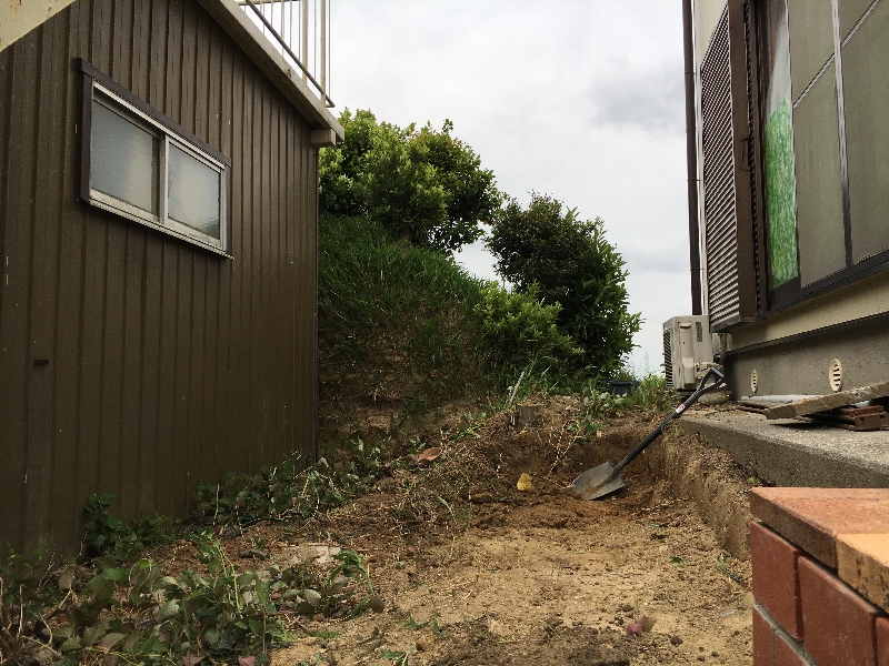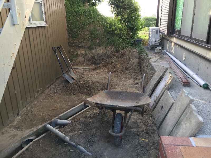 このエリアの完成形は土留めをした後、物置小屋を作り