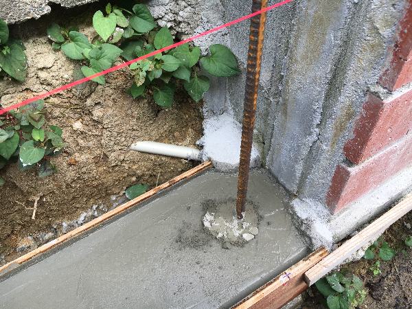 グラグラするのでこのようにセメントをまぶしてコンクリート