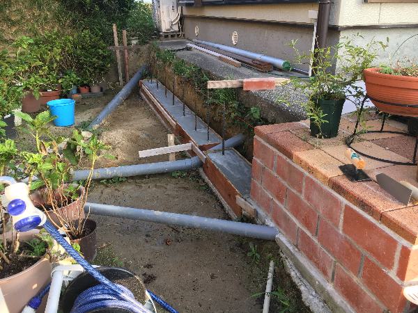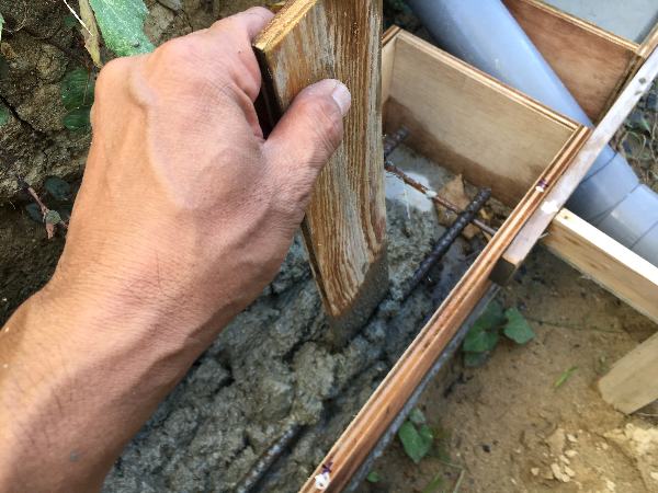 こうして一日掛けて土留めベースコン打ち込みの完了です。