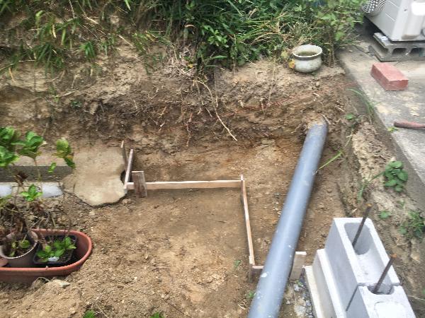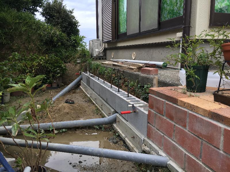 今回追加で奥側に施工するブロックを繋ぐ上で、途中に有る