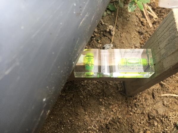 でも枠の水平は必要なのでこのようにミニ水平器で確認して
