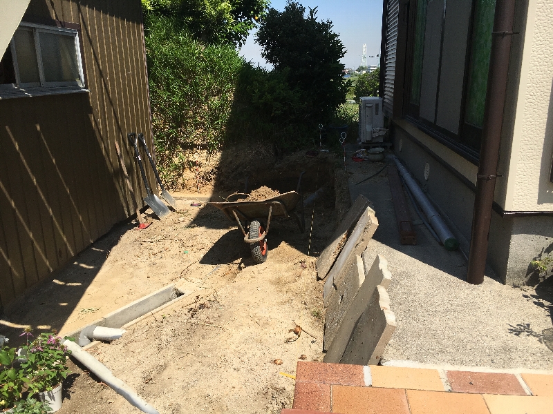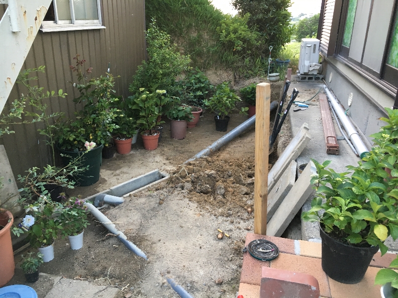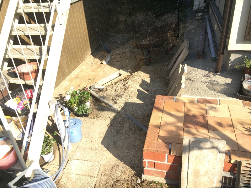 午後にはこのように奥の排水パイプ付近も園芸用スコップを