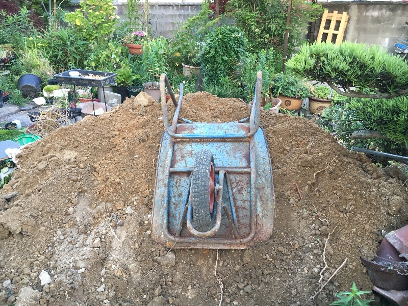 約3立米の土を漉き取りました。しかも根っ子やら配管やら