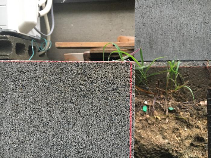 前回はこの奥の角部に積むブロックの高さ起点になる3箇所の