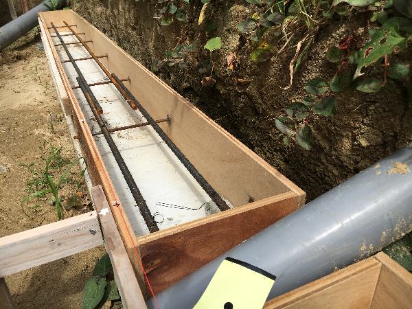 左写真は2分割されている土留めの奥側、右は手前側それぞれの