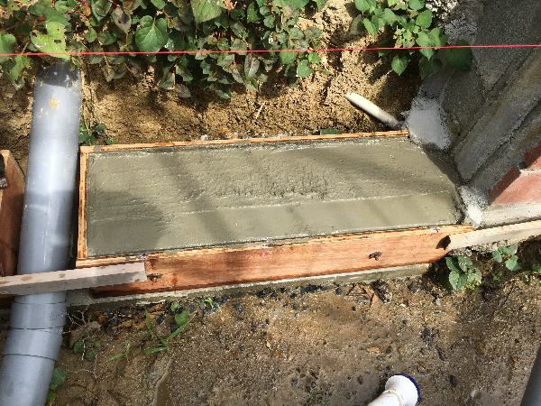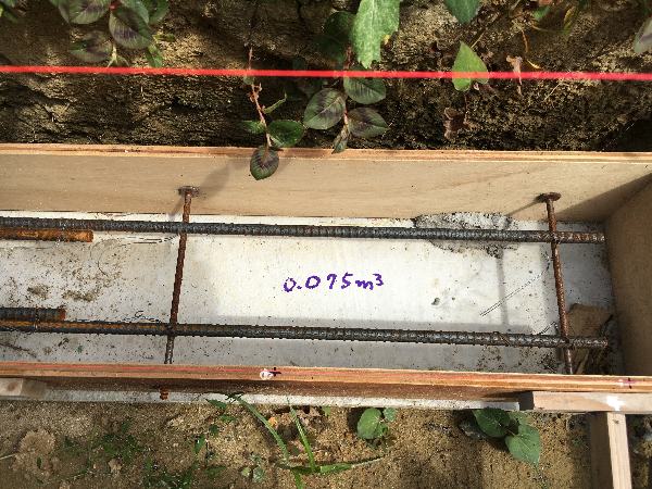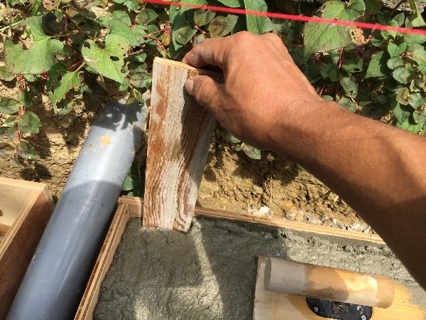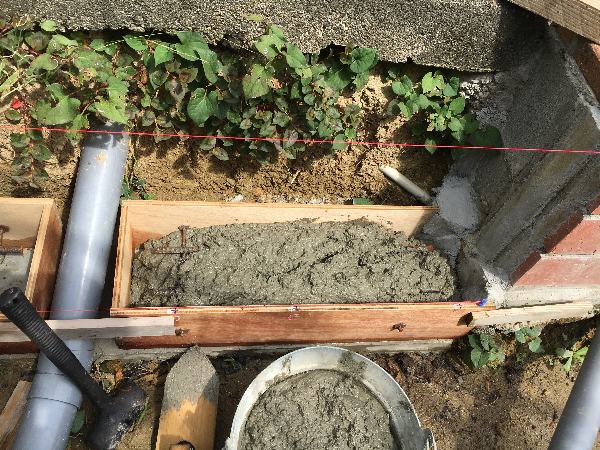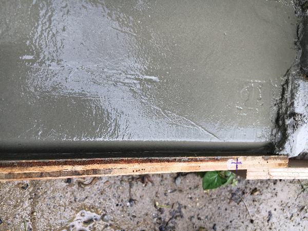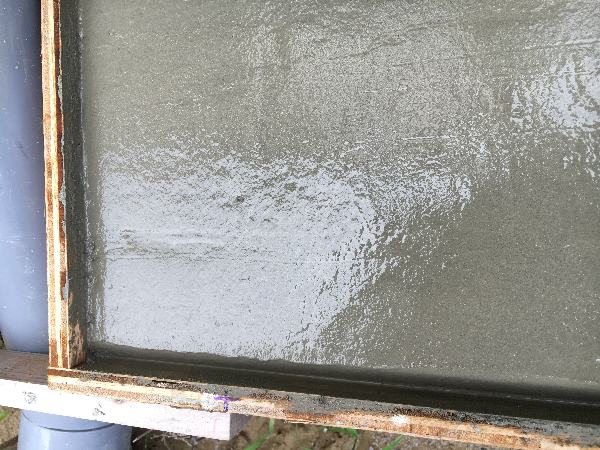 コンクリートの投入はレンガデッキ寄りの小さな部分から。