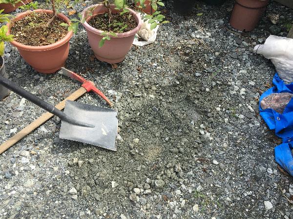 ある砕石を流用します。C-40の砕石ですがきっと問題無い
