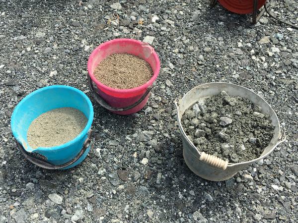 この量でセメント=5Kg 砂=10Kg 砂利=20Kg。