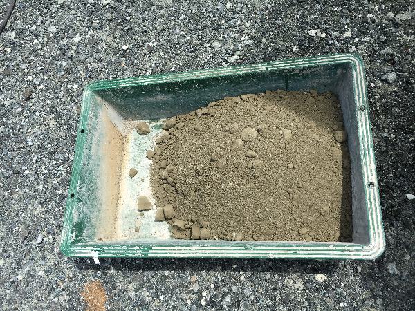 砂はピンク5リットルバケツ7分目を2杯、砂利は庭に敷き