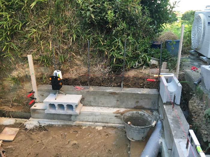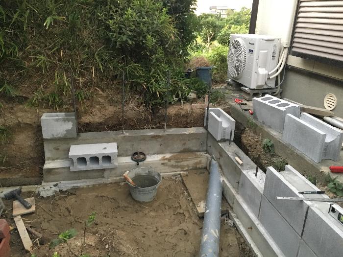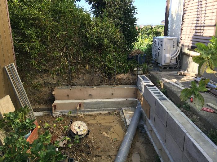 先日施工したコンクリート擁壁部分の型枠を撤去して、