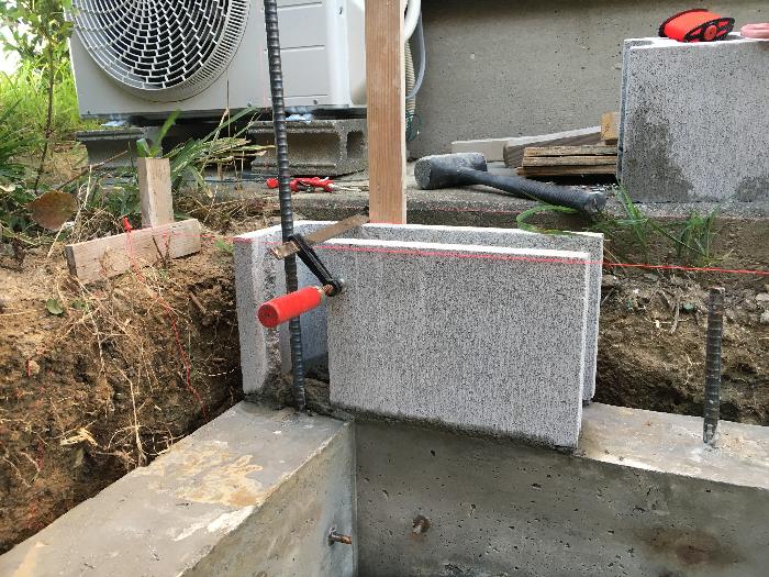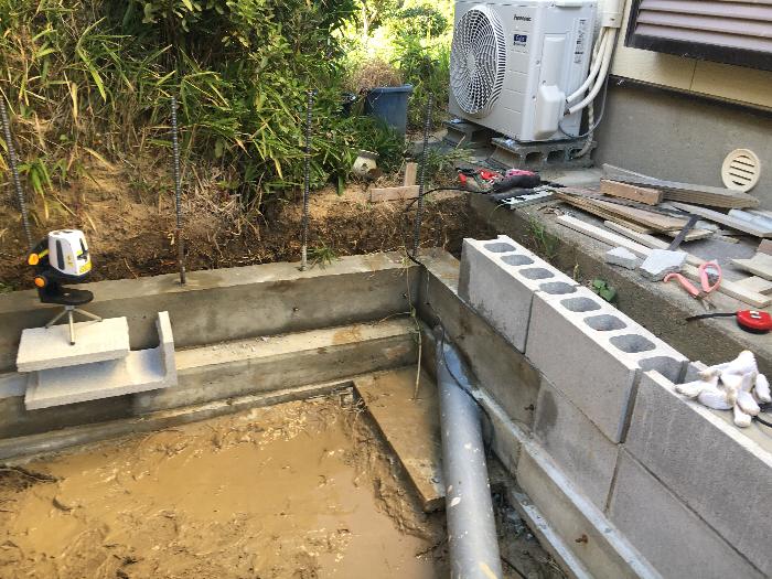 これで水糸を張ってブロックを積めばレンガデッキ及び犬走り