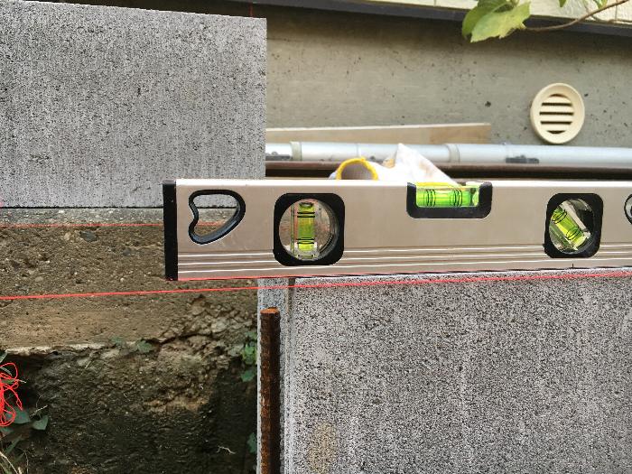 設置した角部のコーナーブロックの天端高さと同じレベルに