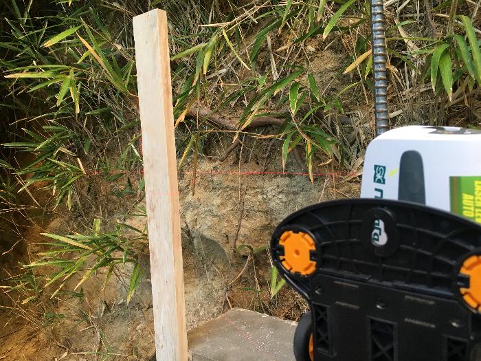 ここは下のコンクリート擁壁の壁に板を垂直に固定して先ほど