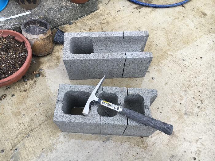 ブロックは簡単に割れますがハンマーの当て所は写真で見る縦方向。