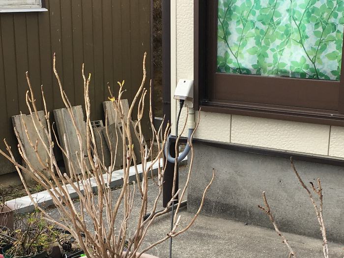 コンセントの設置場所は裏側に木が在る所を探して決めました。