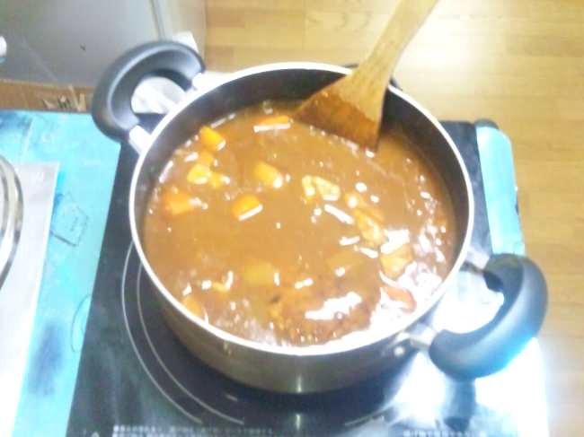 キッチンにはカレーのイイー匂いが立ち込めて さぁ出来上がり。