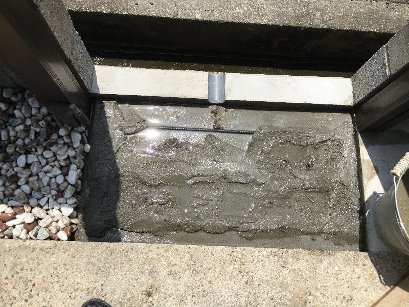 モルタルで適当に埋めて、補強でD10鉄筋を