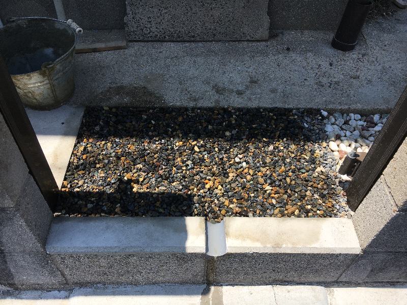 で、その水洗いした砂利を敷き詰めて、