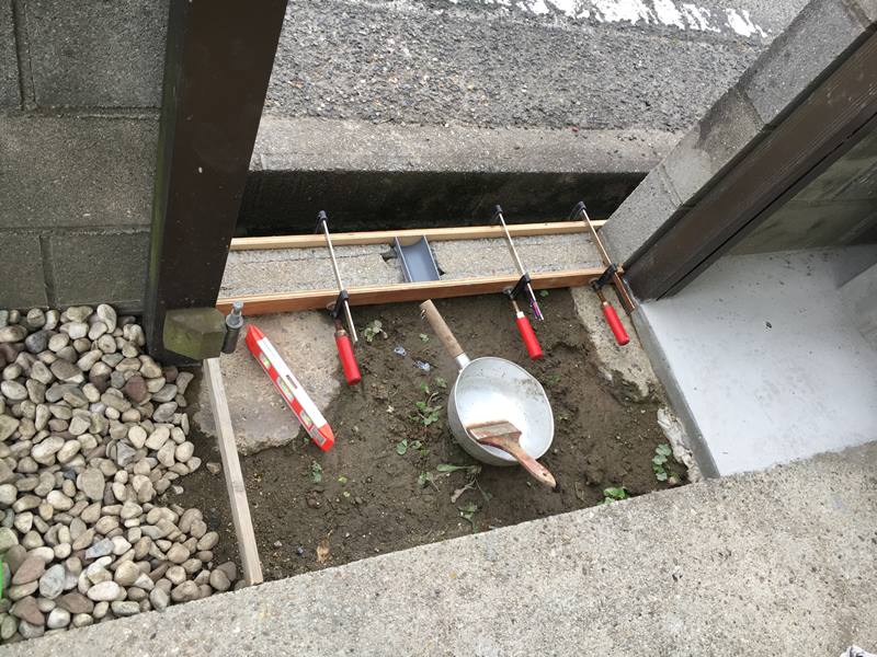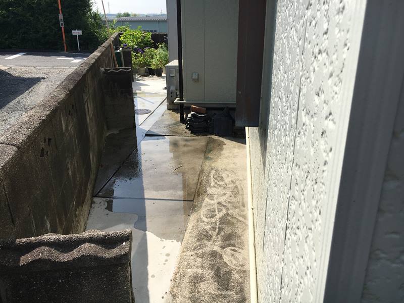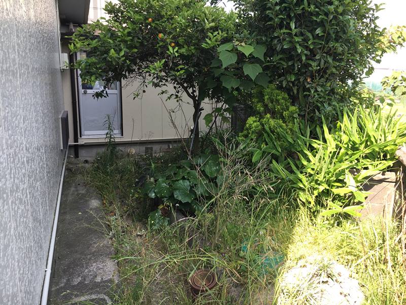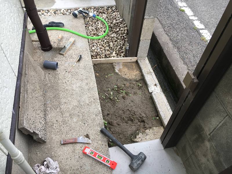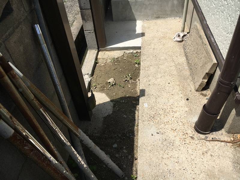 で、今回のDIYですがこの裏庭の犬走りと土間コン