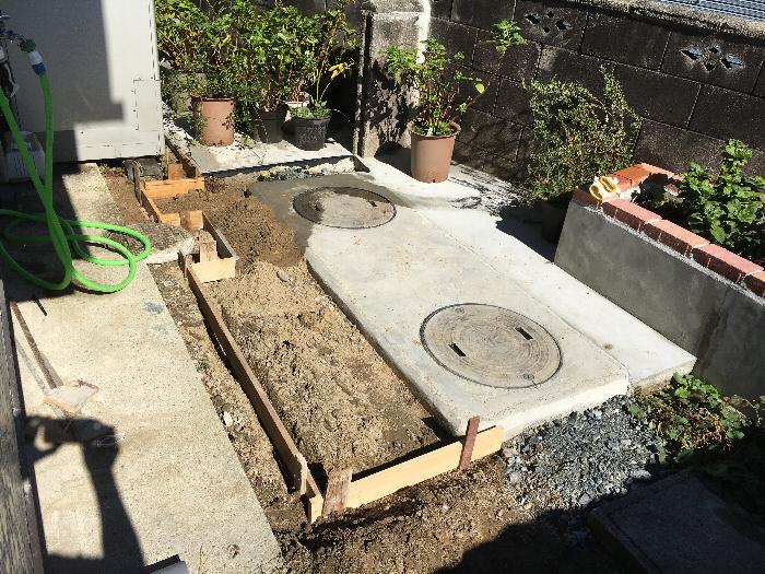 今回はこのデコボコ浄化槽の御母屋お勝手寄りのエリアに