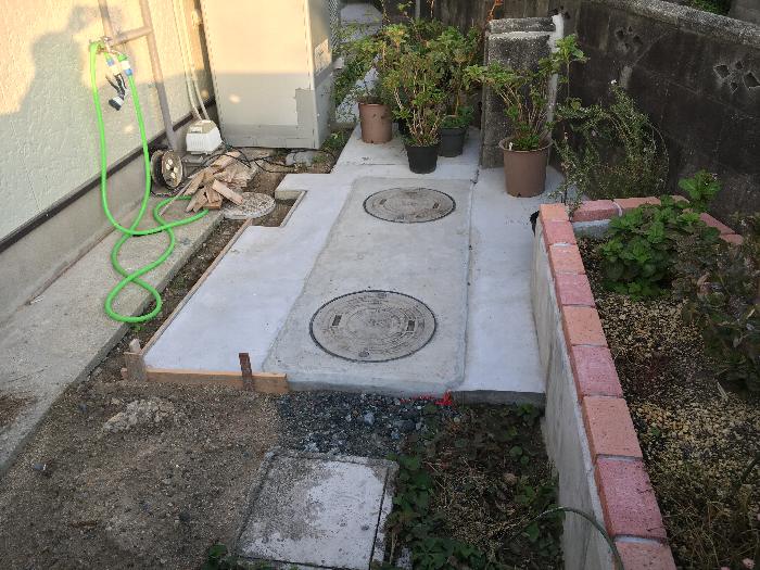 デコボコ浄化槽の右側、そしてこの位置は裏庭への入り口すぐ