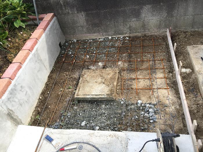 枠の設置が済み、地盤の漉き取りでコンクリート厚さ80+