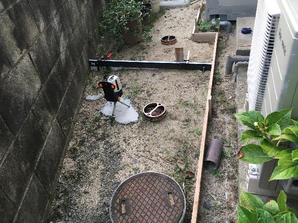 実はこの裏庭のG.Lの関係で本当は塀沿いの起点のレベルを同じ
